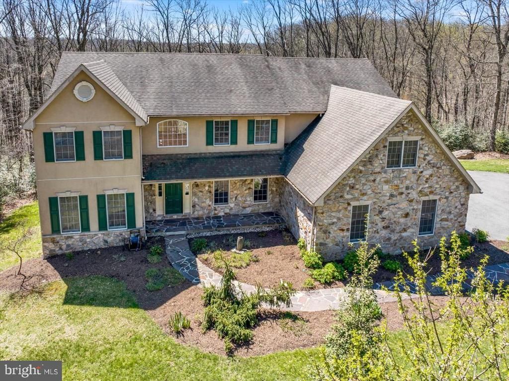 Welcome home to 820 Oregon Road, tucked away between Ledgerock Golf Course and Nolde Forest, in the desirable Governor Mifflin School District! This stunning property offers four bedrooms, three and a half bathrooms, and sits on a peaceful 3.29 acre lot. As you approach the home, you will immediately appreciate the privacy provided by the long driveway and the beautiful curb appeal, featuring stone accents, a charming stone walkway, and a spacious three car garage. Step inside to a grand foyer with beautiful hardwood flooring that flows throughout much of the main level. The layout offers both comfort and functionality, with a living room that opens into a spacious family room featuring soaring ceilings, skylights, an abundance of windows for natural light, and a cozy fireplace. The main level also includes a private office with double doors, perfect for working from home, as well as a convenient half bath. The updated kitchen is a true highlight, offering well maintained wood cabinetry, a center island with seating, new granite countertops, and a stylish backsplash. A bright sitting area leads directly to the back deck, making it ideal for everyday living and entertaining. A formal dining room and main floor laundry complete this level. Upstairs, the expansive primary suite features two walk in closets and a luxurious en suite bathroom with a soaking tub, perfect for relaxing at the end of the day. Three additional generously sized bedrooms share a full hall bathroom. The fully finished walk out basement provides even more living space, complete with tile and carpet flooring, a beautiful bar area, fireplace, full bathroom, and direct access to the backyard. Outside, enjoy your own private retreat with a large deck overlooking the trees, a tranquil koi pond, and a stone patio with a fire pit, perfect for entertaining or unwinding. With 3.29 acres surrounding you, this property offers peace and quiet while still being conveniently located near shopping and dining. Ideally situated between Ledgerock Golf Course and Nolde Forest, this home truly offers the best of both privacy and location. Schedule your showing today!